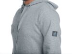 بلوفر متصل بغطاء رأس وأربطة قماشية مزينة بدبوس معدني لامع يتميز بسحاب معدني كامل من الأمام وجيوب جانبية كبيرة وشعار ماركة الشياكة على الكتف .