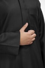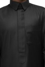 .تميز بإطلالة رسمية مناسبه لجميع مواعيدك الهامة في عملك,ثوب أعمال شتوي مصنوع من قماش بوليستر 100% بملمس حريري , تتميز جمالية تصميمه في ياقة قلاب وجبزور مثلث ,سحاب مخفي، وأكمام سادة