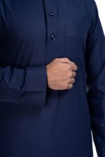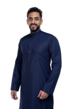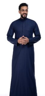 ثوب كلاسيك سادة مصنوع من قماش بوليستر 100% بملمس حريري, ثوب خفيف الوزن يتميز ببساطة تفاصيله الأنيقة بياقة دائرية,جبزور مثلث الشكل و أزرار أمامية ظاهرة, أكمام سادة مرتبة.