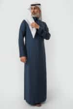 ثوب رجالي مصنوع من خامة السميراميس التي تتميز بالنعومة والإنسيابية والمظهر العصري الأنيق.