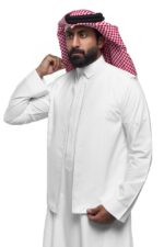 ثوب كلاسيك رجالي, أكمام كبك, جبزور مربع, أبيض