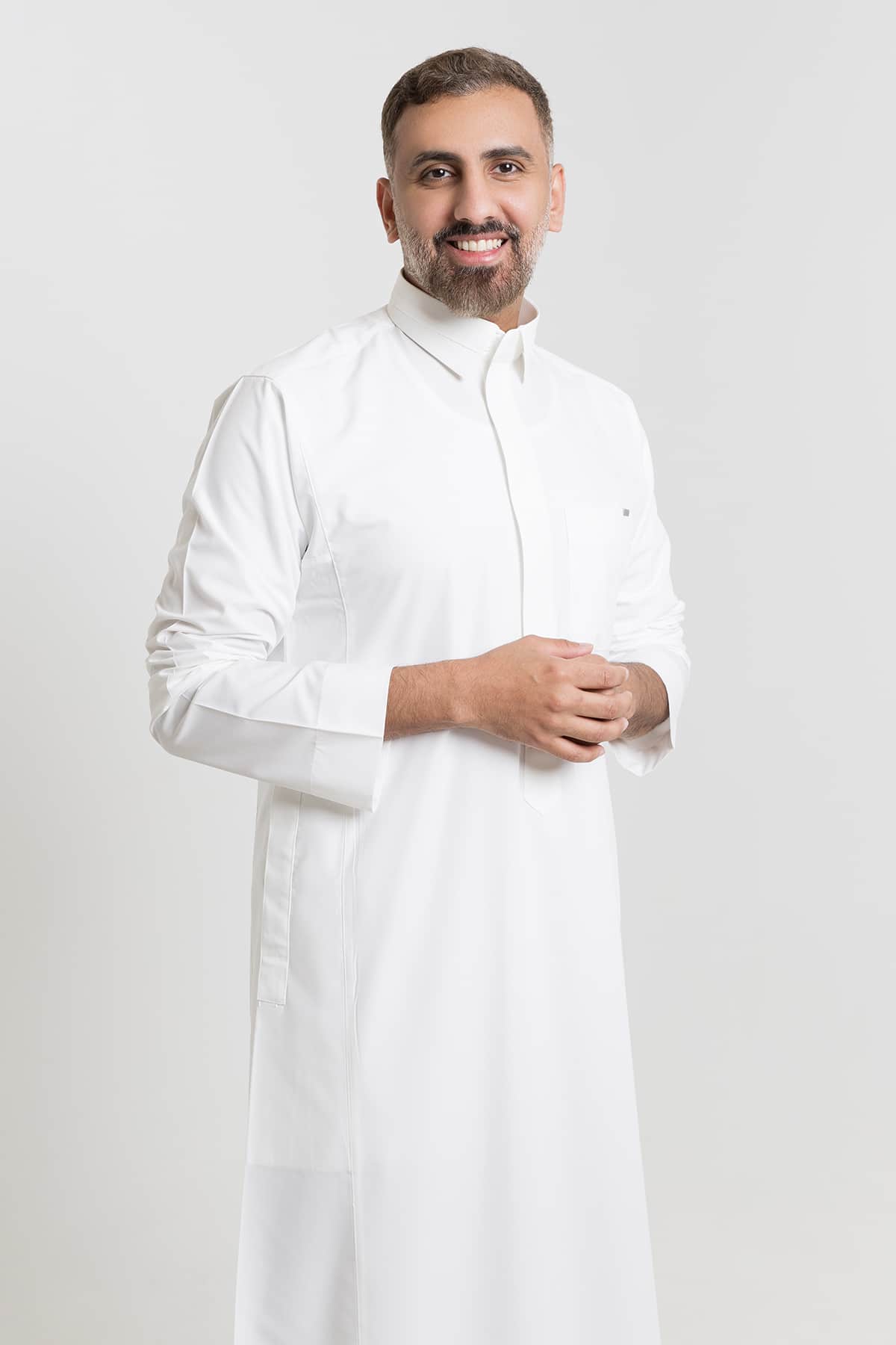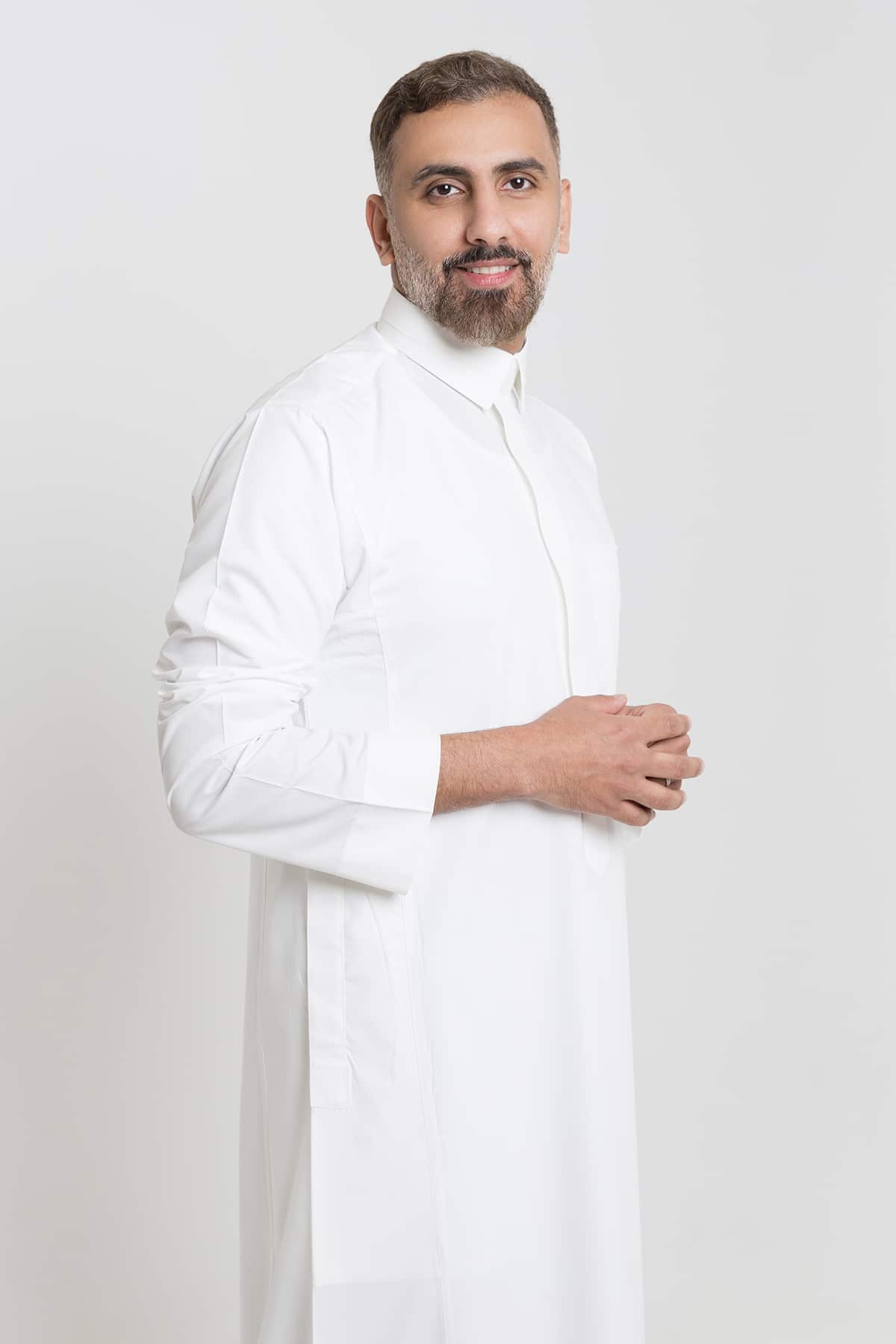 ثوب كلاسيك شبابي , أكمام كبك, أبيض