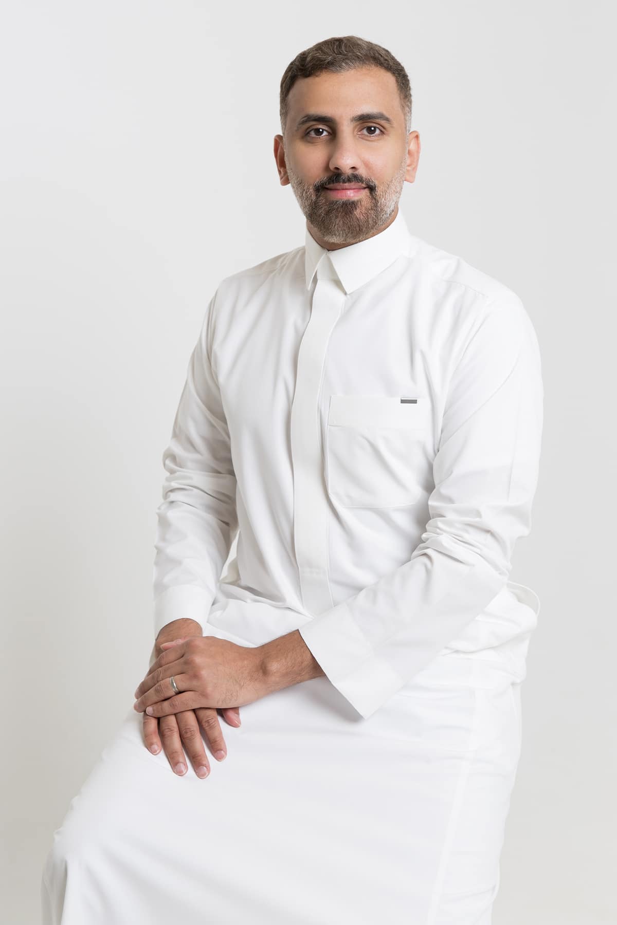 ثوب كلاسيك رجالي, أكمام كبك, جبزور مربع, أبيض