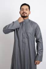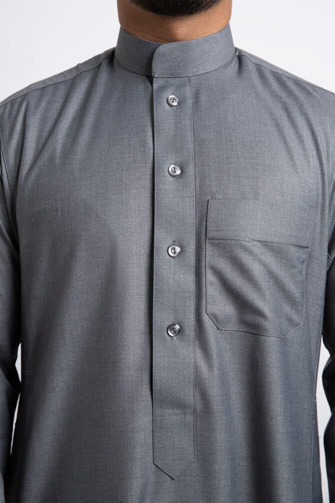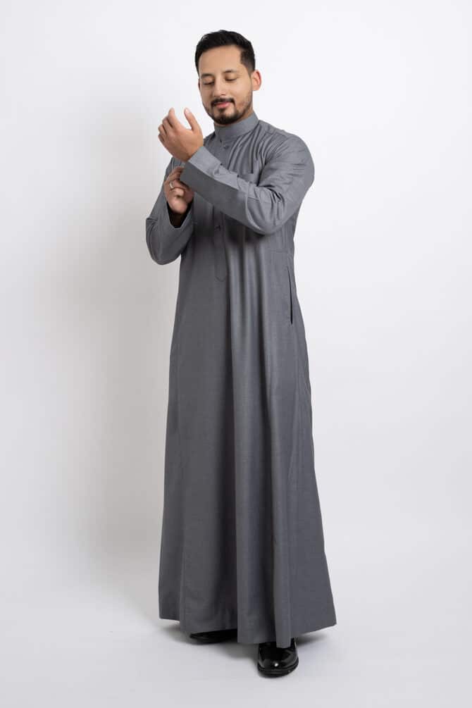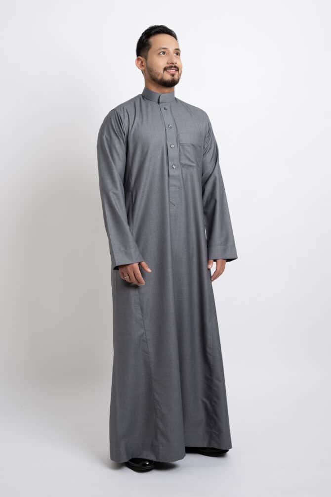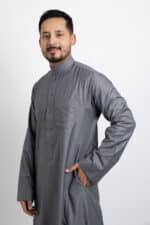 الثوب متوفر باللون الرمادي الأنيق مما يجعله مثالي في أغلب الأوقات سواء خلال اليوم أو بالمناسبات الخاصة.