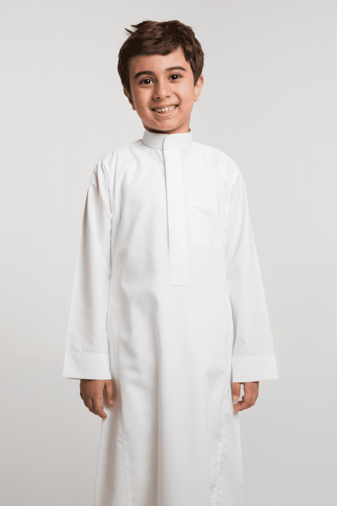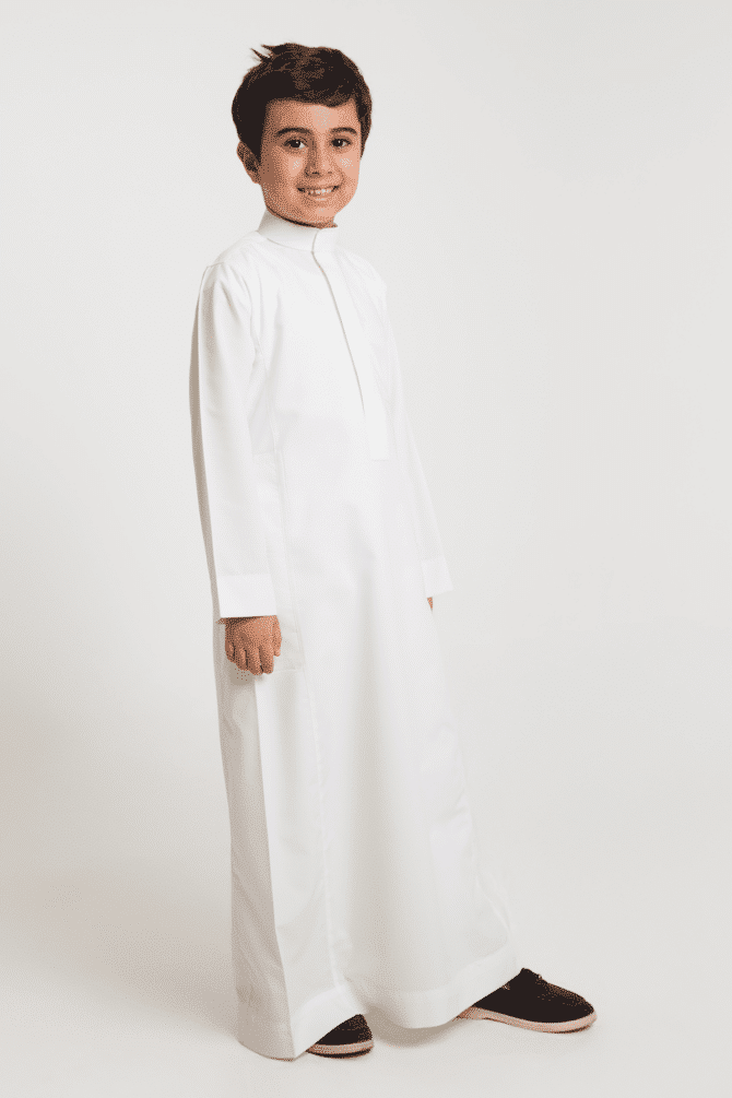 ثوب كلاسيك ولادي, أكمام كبك, أبيض