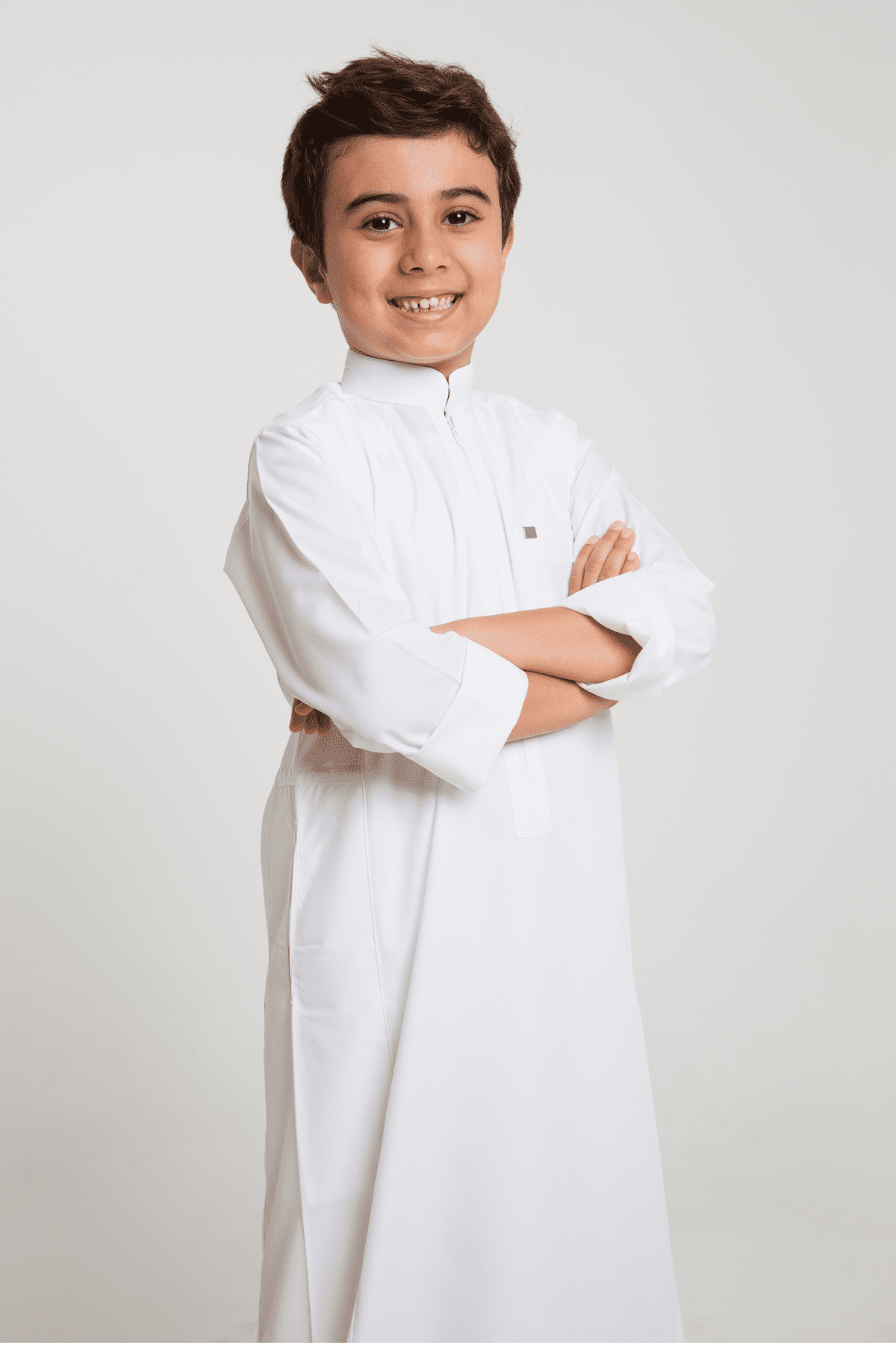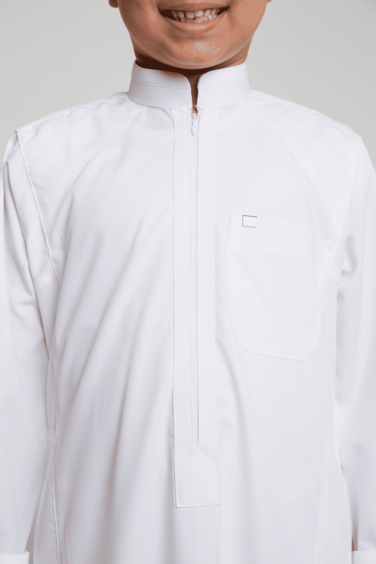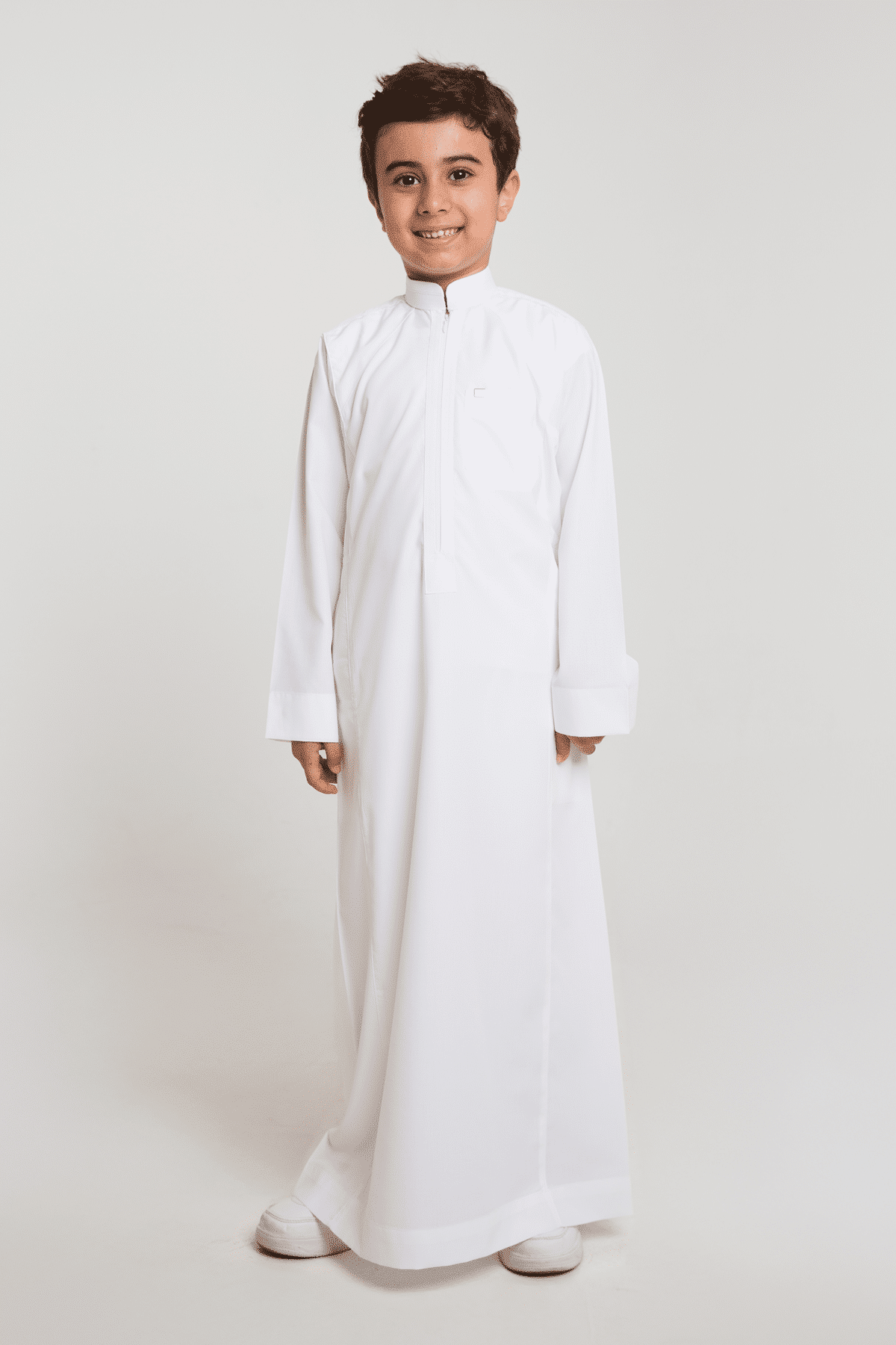 ثوب كلاسيك ولادي, أكمام سادة, أبيض