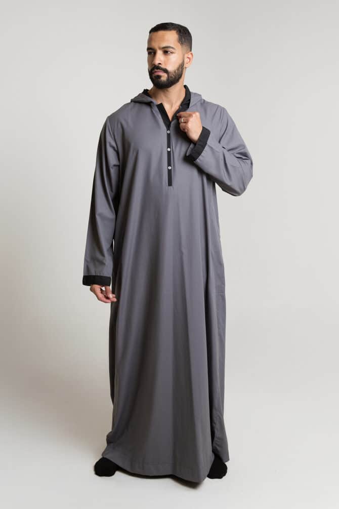 جلابية ري ثوب، أكمام طويلة, لون رمادي