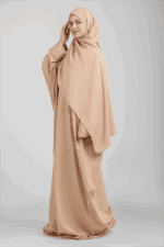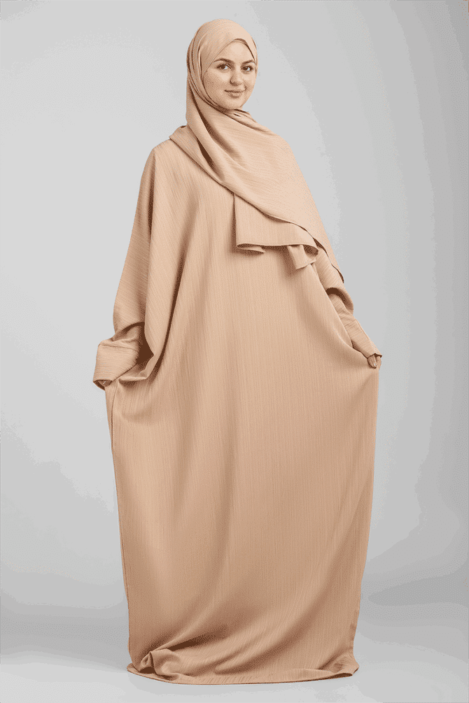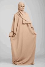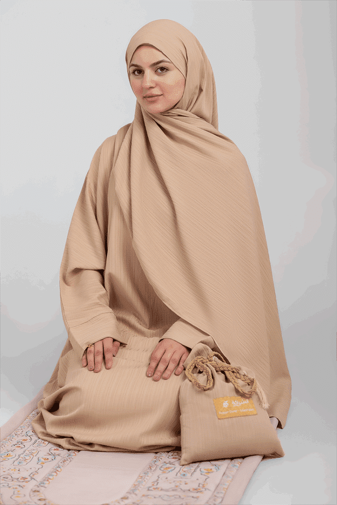 رداء الصلاة بقماش غير شفاف وطرحة طويلة – بيج