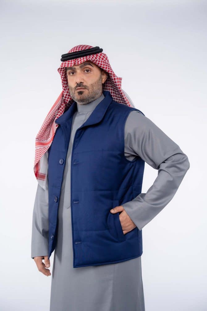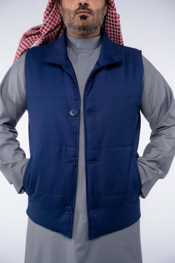 السديري بتصميم أنيق وعصري يناسب تنسيقه مع الأثواب أو الملابس الكاجوال، كما يتميز بلونه الكحلي الذي يضفي لمسة راقية، وخامته الدافئة المثالية لأجواء المناطق الباردة.