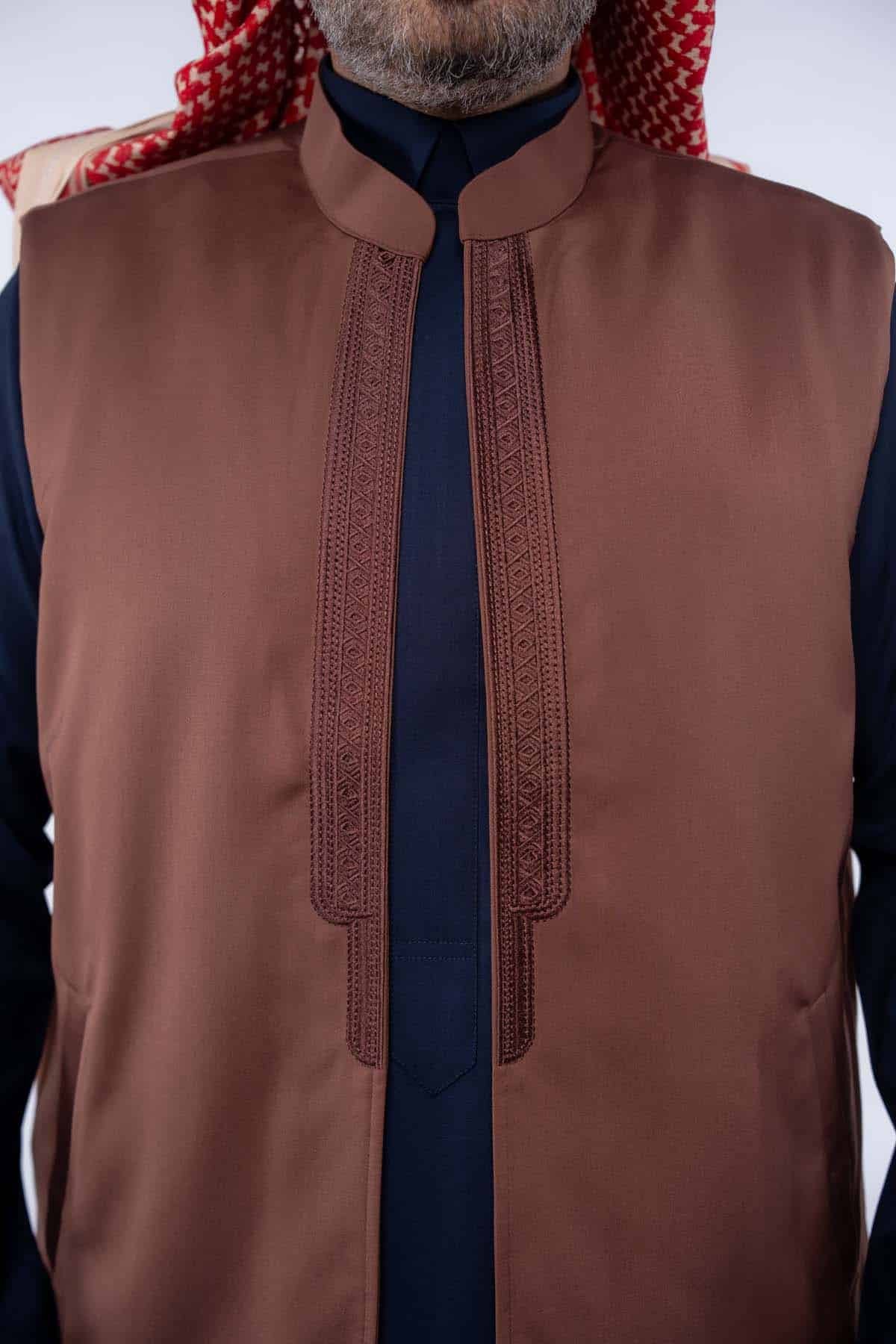سديري أنيق مبطن بفروة داخلية تمنح دفئًا مريحًا في الأجواء الباردة، ومزخرف بنقوش تقليدية تعكس الهوية المحلية بروح عصرية. يتميز بقصة متقنة وتصميم مميز مع ألوان محايدة مثل البني تناسب مختلف الإطلالات الشتوية.