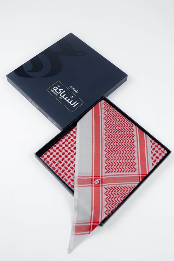 شماغ رجالي شتوي من الشياكة، ستاندر باللون الأحمر مع أرضية رمادي. تصميم أنيق بخامة دافئة وعملية، يضيف لمظهرك لمسة كلاسيكية تناسب أجواء الشتاء.