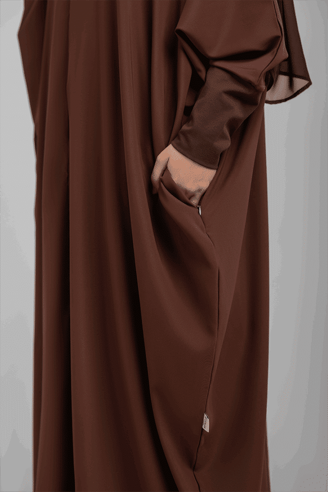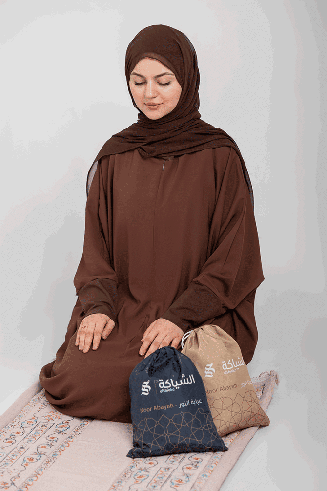 عباية النور البني من الشياكة – اختيارك الأمثل لأداء مناسك العمرة أو الحج بكل راحة وأناقة.