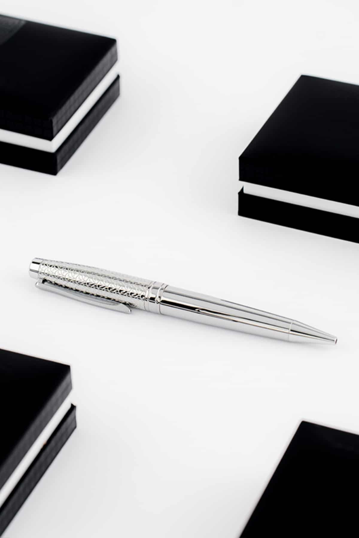 مصنوع من المعدن بحبر أزرق سلس وتصميم عملي ليكمل إطلالتك بكل شياكة.