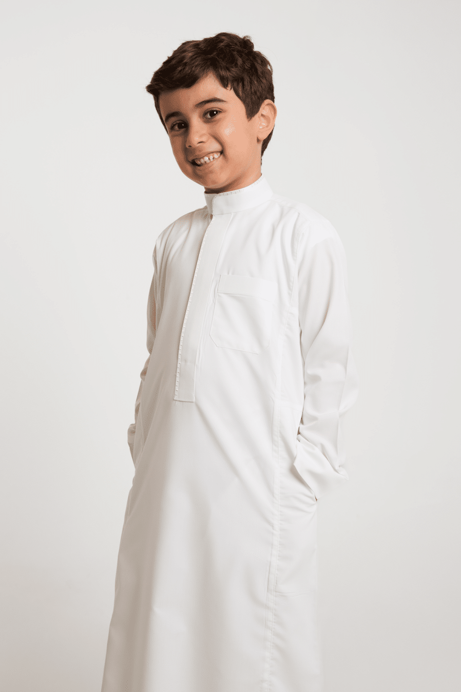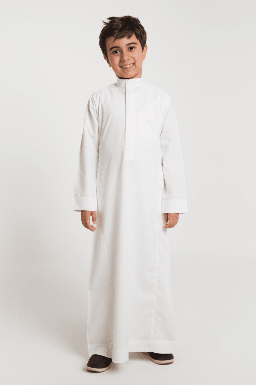 Zakhrafat, Thobe, Cream, Boys, Plain collar