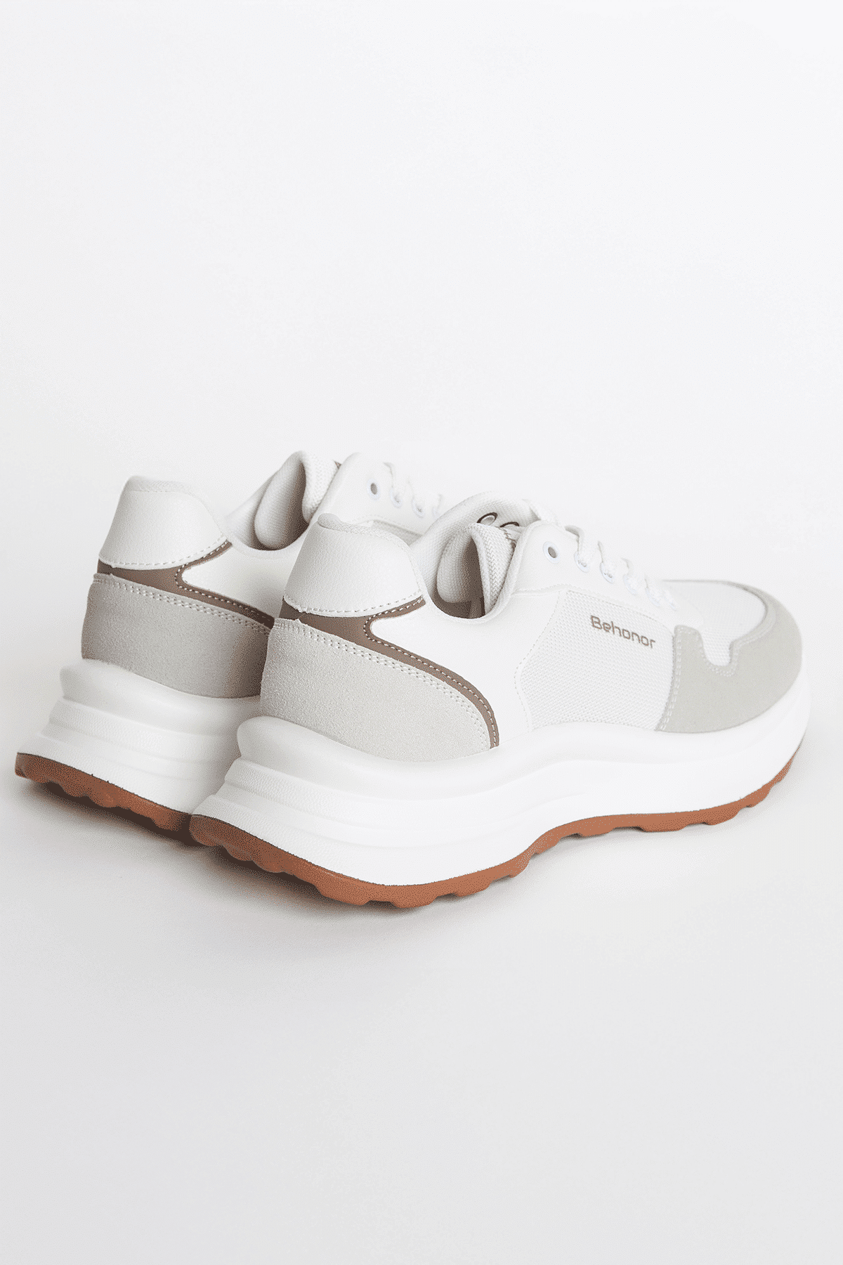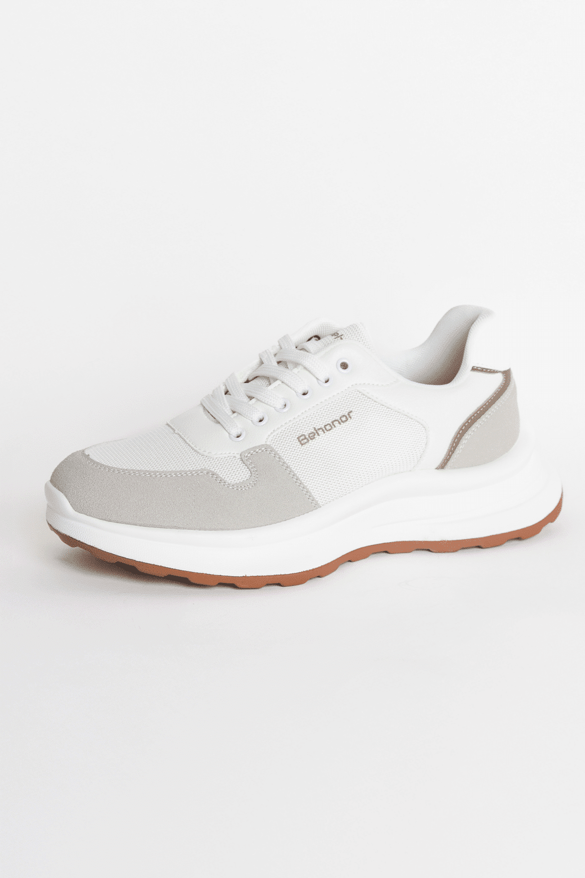 Experience everyday comfort with BEHONOR’s white casual shoes, featuring subtle grey accents.