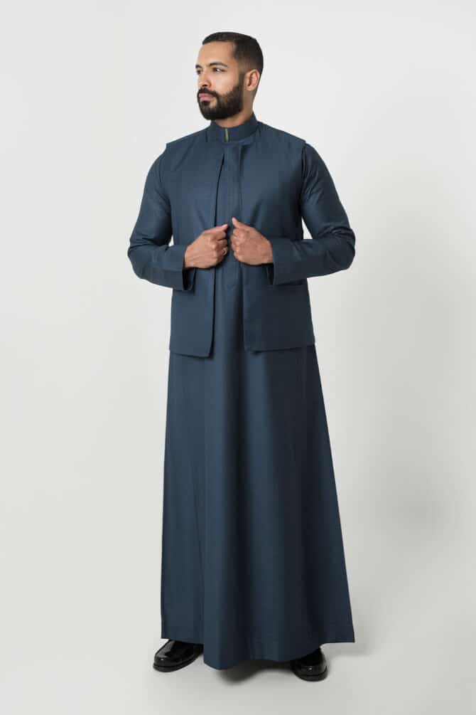 Alshiaka’s men’s thobe vest. This vest adds elegance to your traditional thobe.