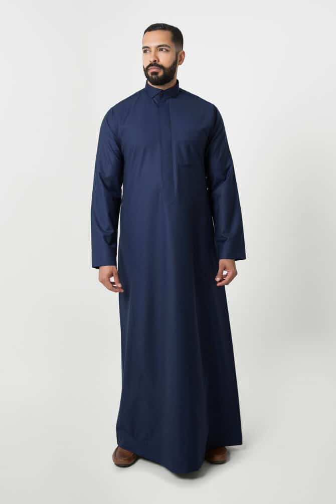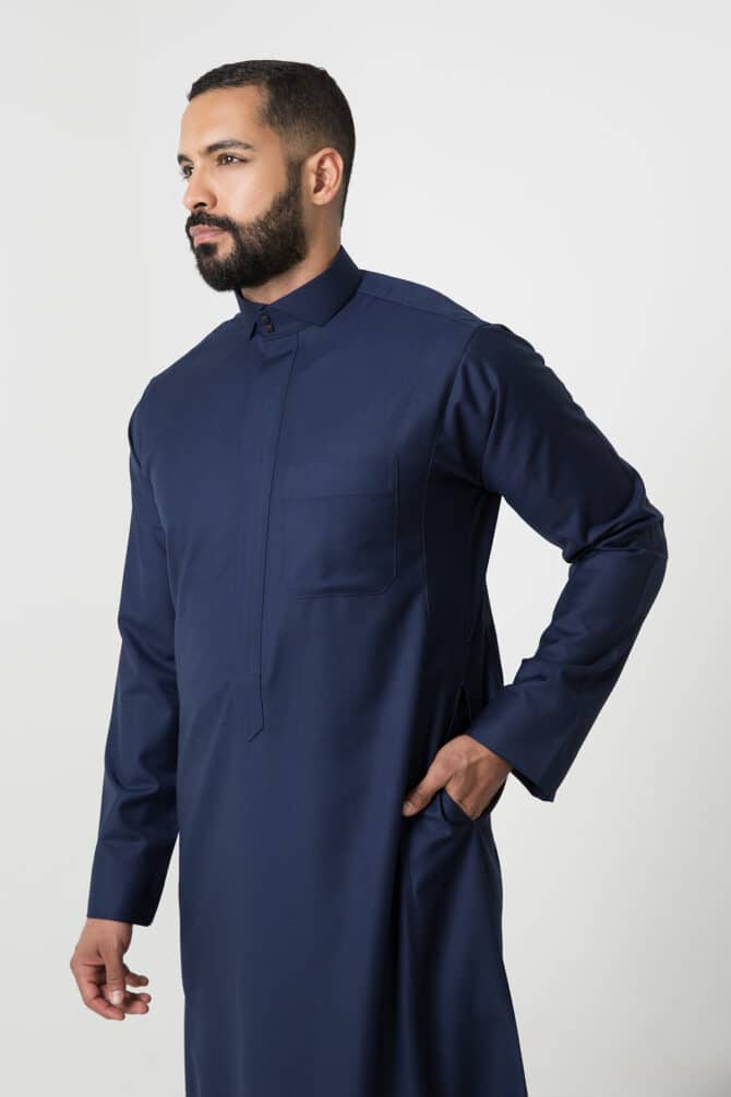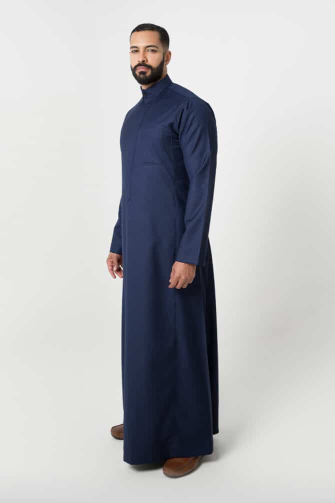 Experience luxury with this premium navy winter thobe from Alshiaka, designed for Saudi businessmen.