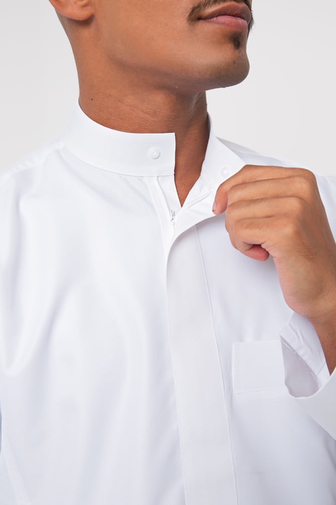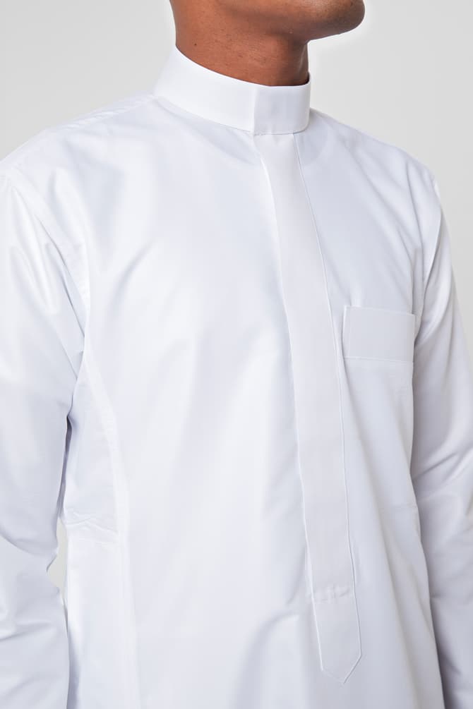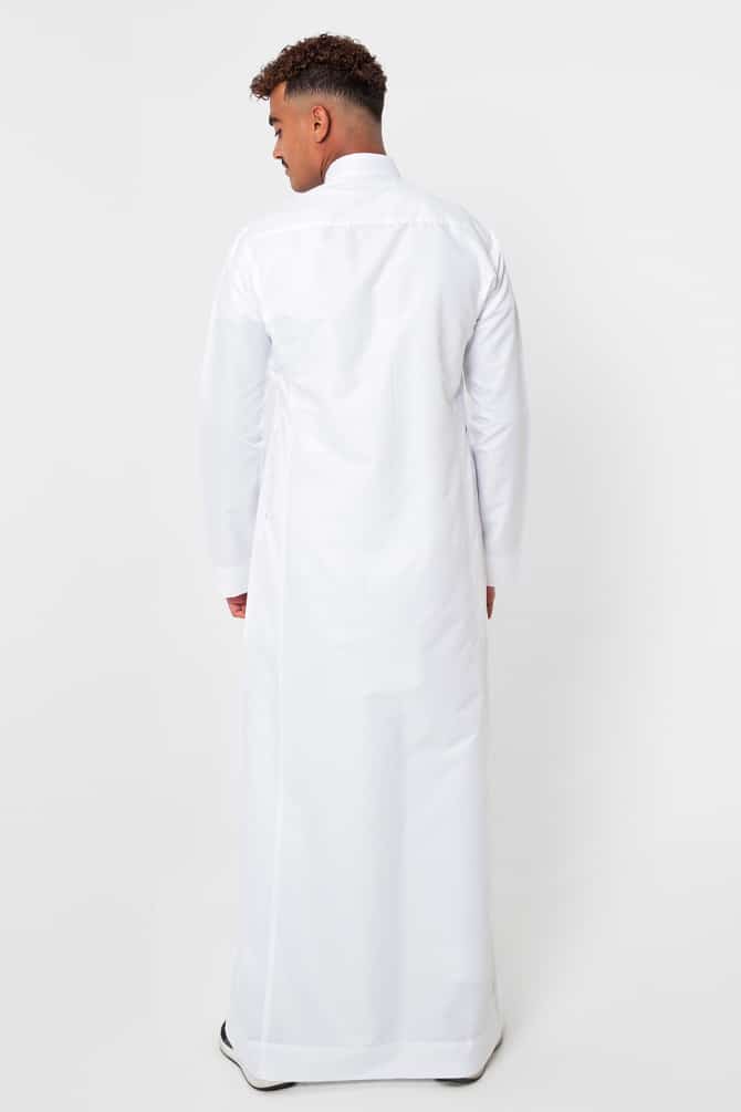 Harkat thobe is made of 100% polyester fabric with Silk texture and features double stitching with wide side pockets that give you more comfort doing your daily activities. Its details are unique in a plain round collar, triangle placket shape, and wide plain sleeves.
