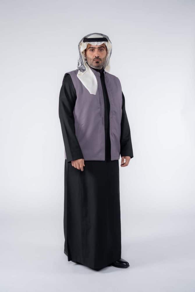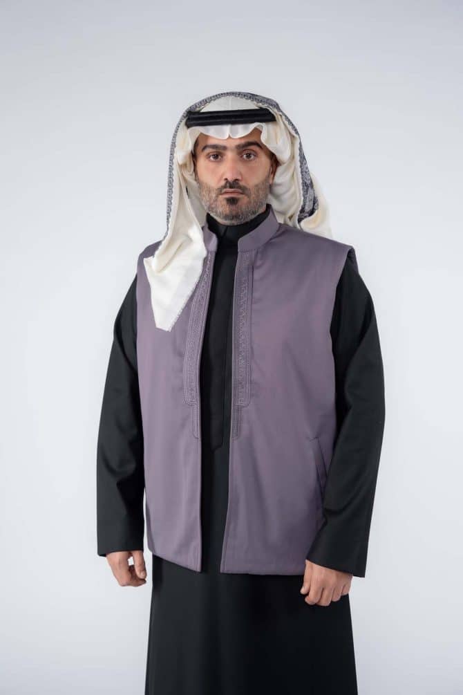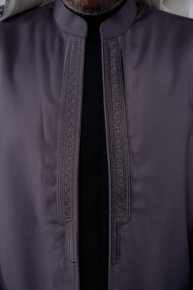 Stay warm with Al Shiaka’s winter vest featuring a soft inner lining. The vest has traditional embroidery that reflects local heritage and offers a refined fit in neutral gray tones, making it an ideal choice for winter wear.
