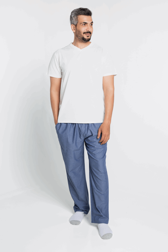 The White and Gray Pajama Set offers unmatched comfort and elegance, designed for the modern man to relax stylishly at home.