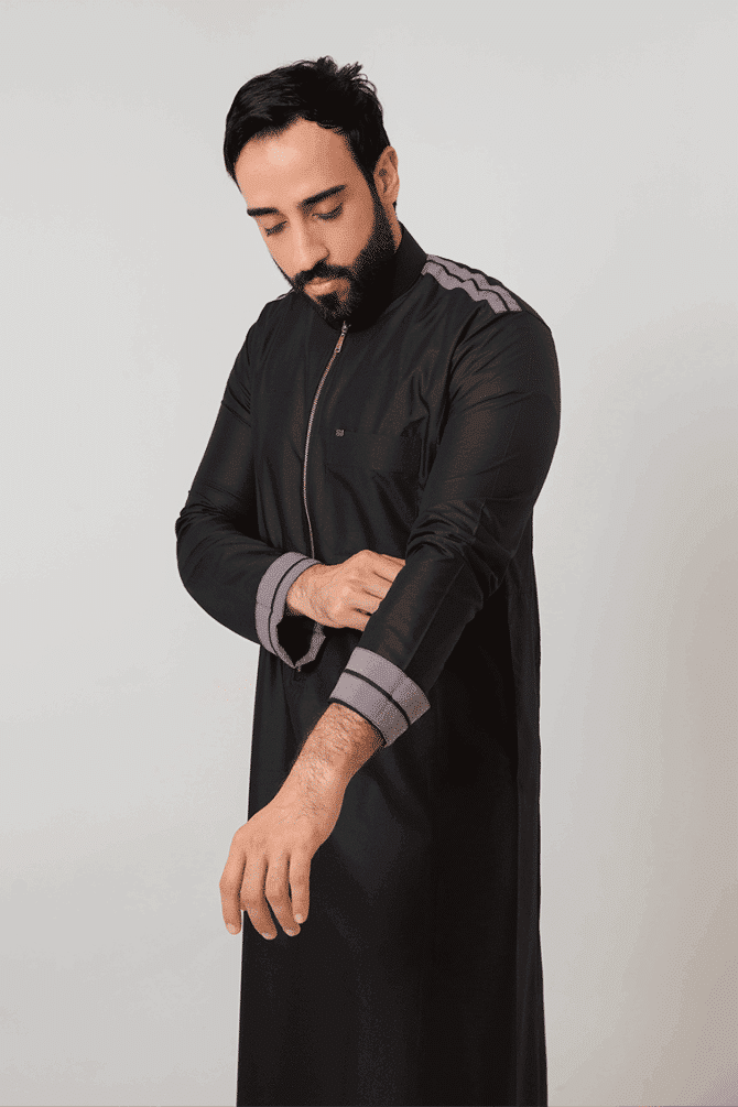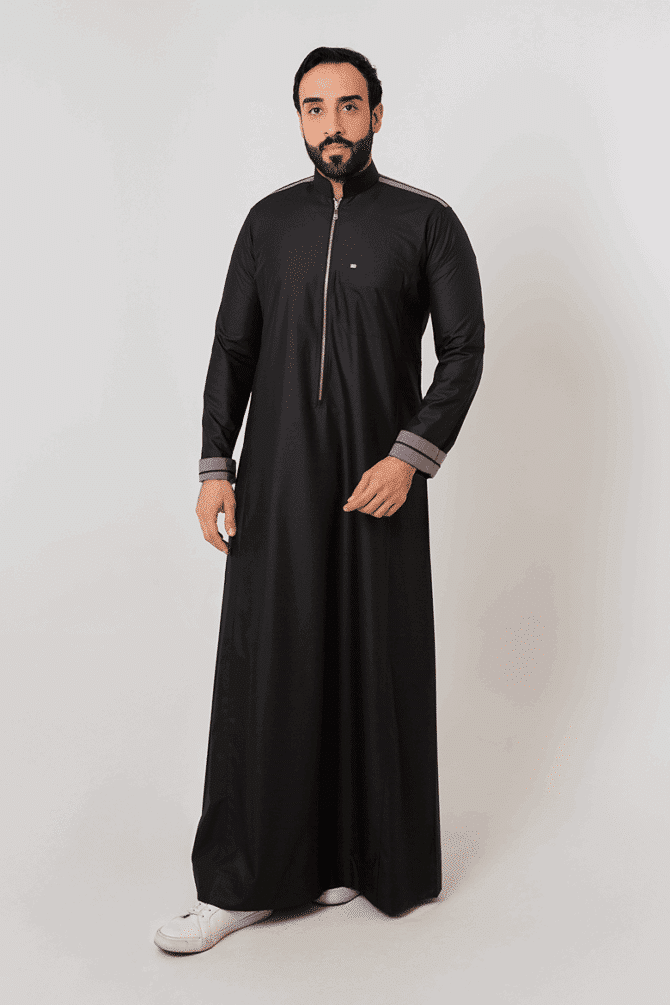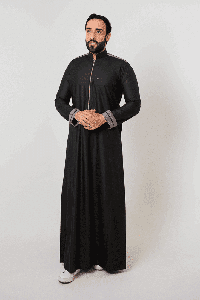 Alshiaka Rethobe – Black Zipper Thobe with Unique Design.