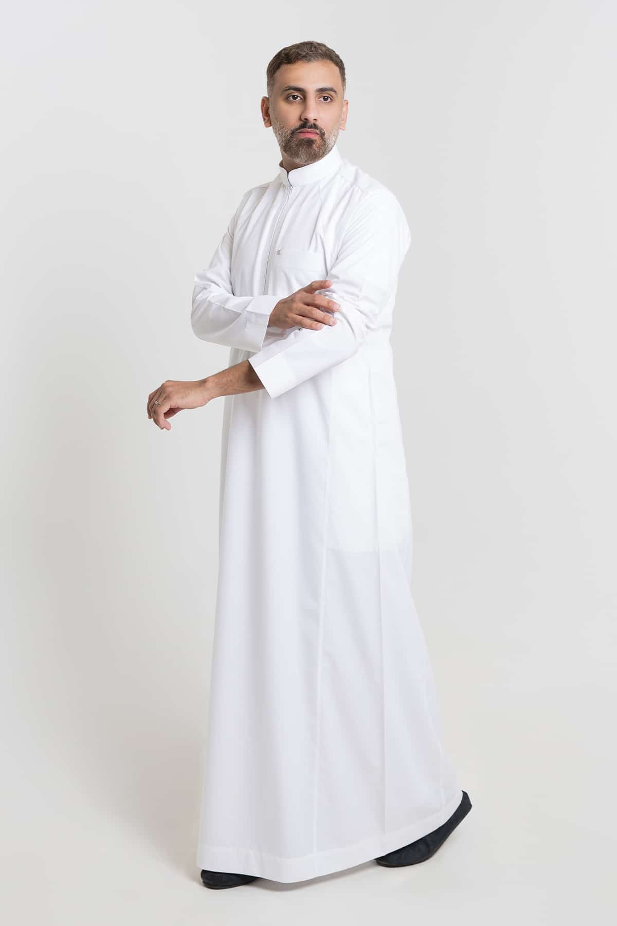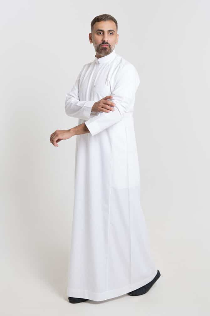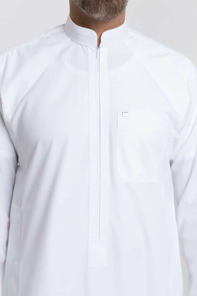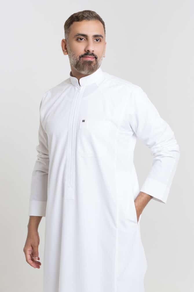“Alshiaka Rethobe – White Men’s Thobe with Unique Design.