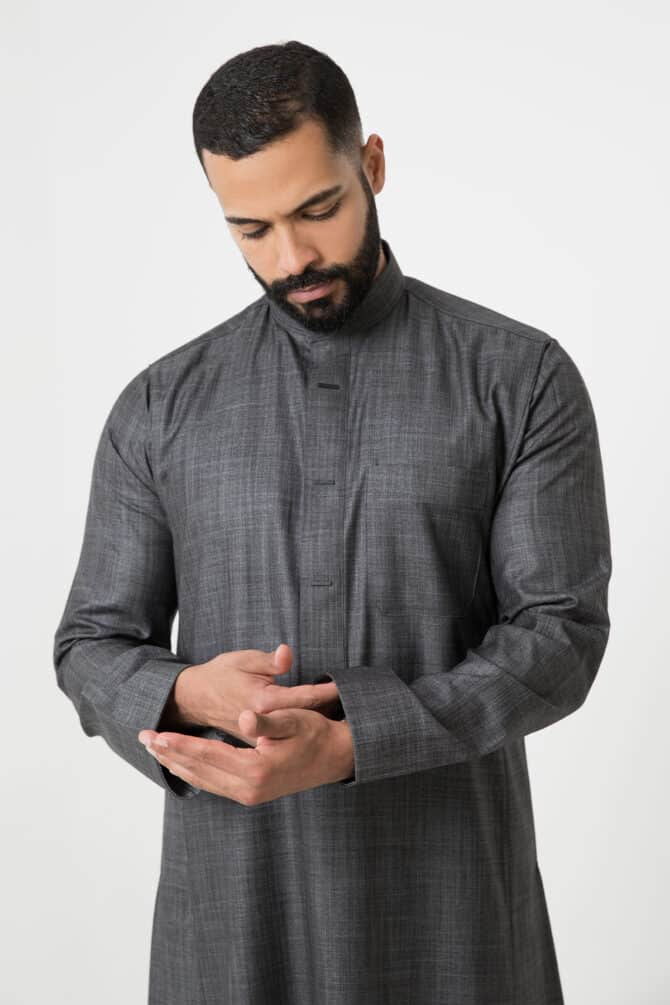 Rethobe Winter Thobe, Charcoal Color, Plain Sleeves, Men