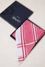 Alshiaka Standard Shemagh, Red with Black Lines – Elegance and Luxury.
