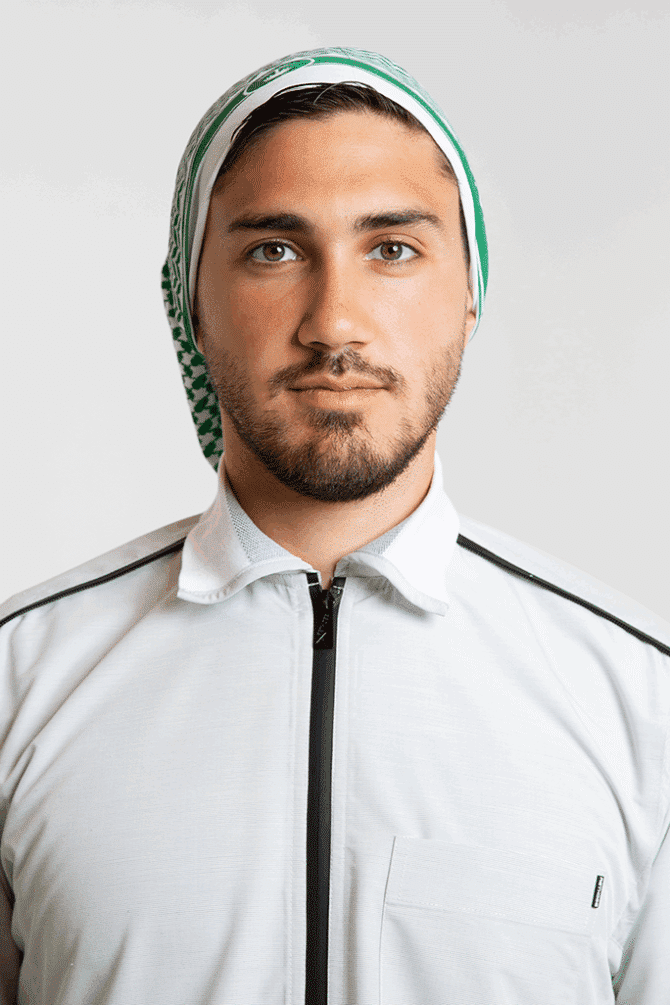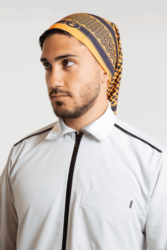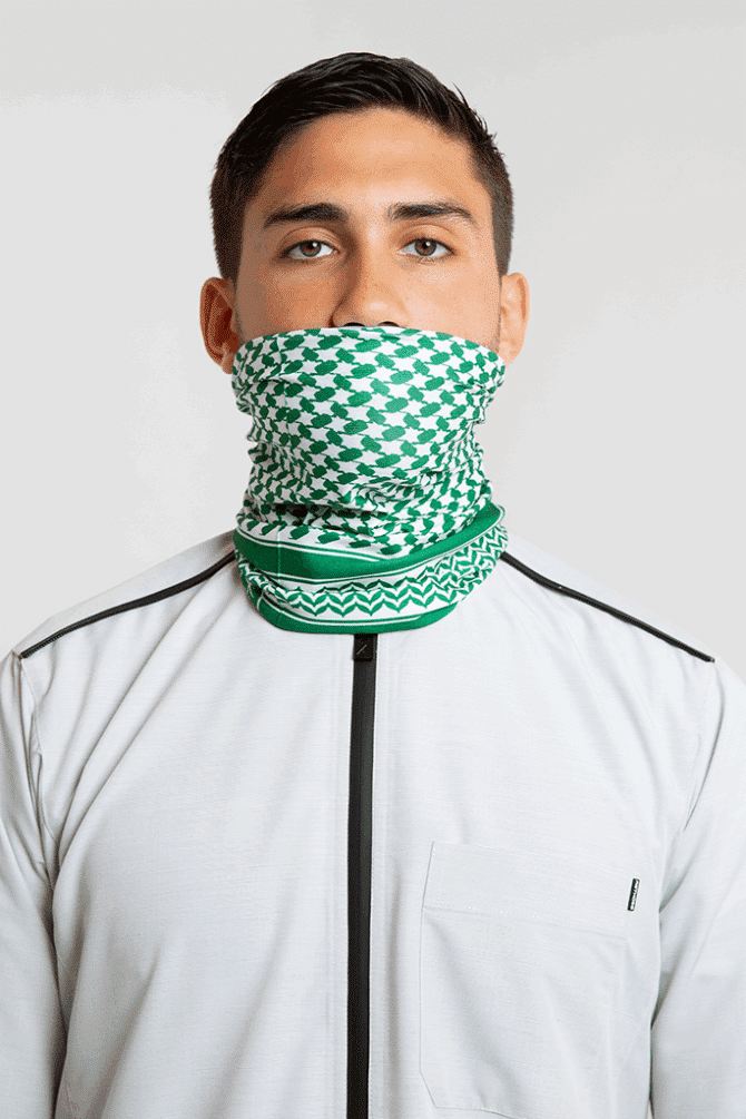 Crafted from soft, stretchy fabric inspired by classic thobe material, this bandana features a distinctive Shemagh pattern in bold, contemporary colors.Wear it on your head, around your neck, or as a unique fashion accessory — ideal for daily wear, sports, or outdoor activities.