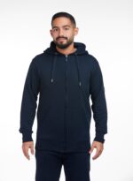 Pullover Hoodie with fabric ties with shiny metal pin, it features a full metal zipper on the front, large side pockets, and the Alshiaka logo on the shoulder.