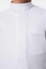 Thobe’s classic Zipper is made of 100% polyester fabric with a cotton texture. It is lightweight, simple, and elegant, and it features a classic collar, square bracket shape with a hidden zipper and plain sleeves.