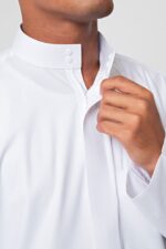 Thobe’s classic Zipper is made of 100% polyester fabric with a cotton texture. It is lightweight, simple, and elegant, and it features a classic collar, square bracket shape with a hidden zipper and plain sleeves.