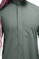 Summer classic plain thobe made of 100% polyester fabric with Silk texture, lightweight, simple and elegant details, features a round collar, Triangle placket shape with hidden zipper, and tidy plain sleeves.