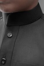 Winter classic plain thobe made of 100% polyester fabric with Silk texture, simple, and elegant details, features a round collar, Tringle placket shape with hidden zipper, and tidy plain sleeves.