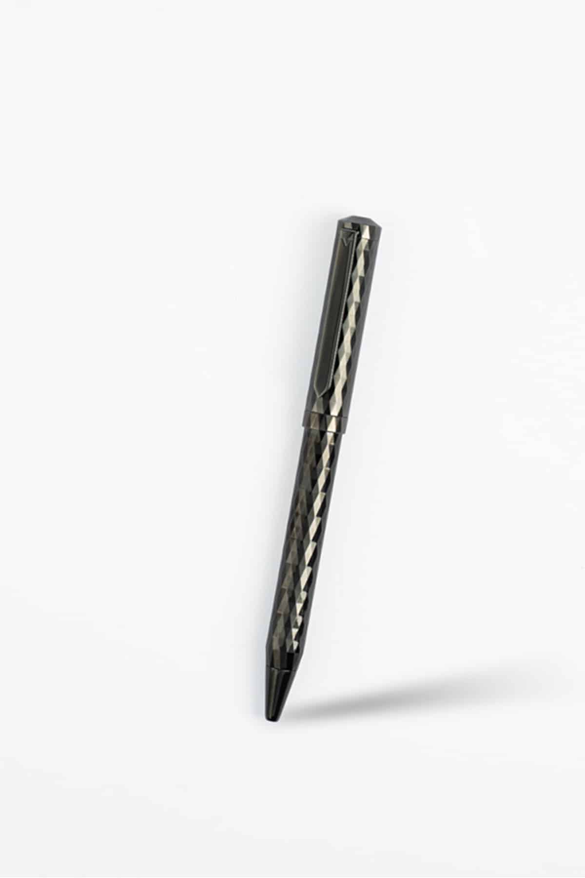 A premium metallic pen with a sleek ribbed black design, offering smooth blue ink writing. An ideal companion for the Saudi thobe, adding a refined and distinguished touch to your style.
