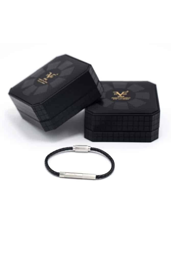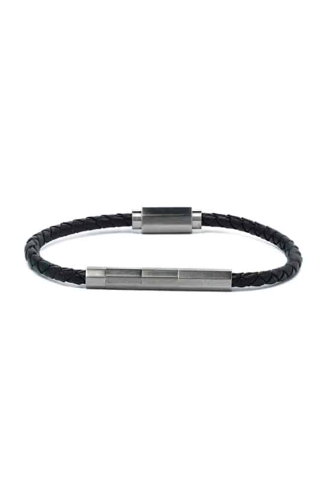 Men’s bracelet crafted from leather and steel in black. A classic accessory and a refined gift choice
