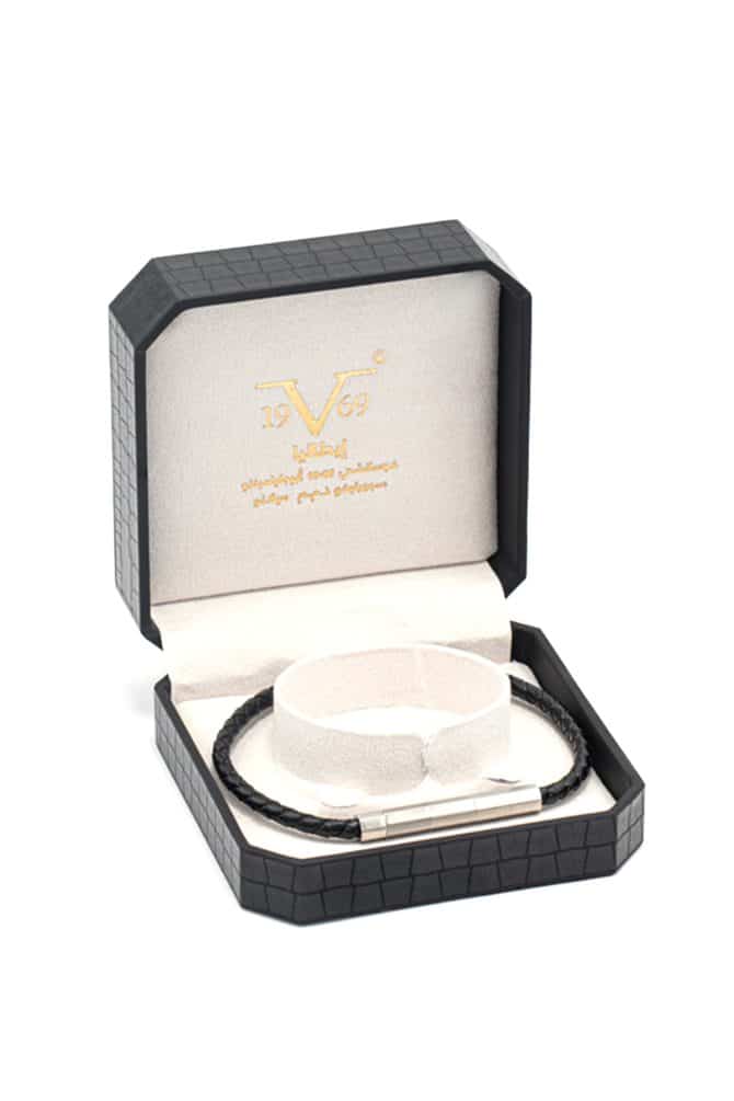 Versace Bracelet Leather & Steel – Black (Classic Style)