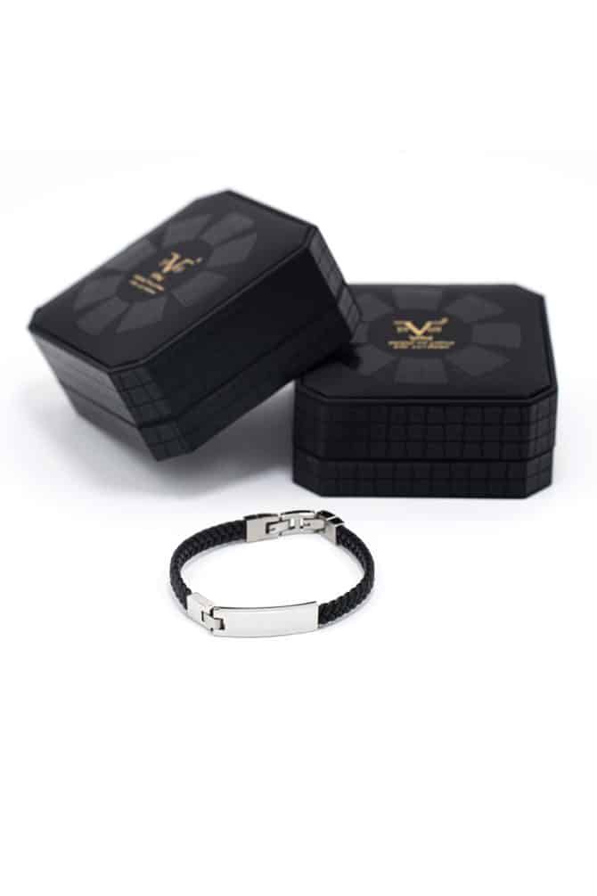 Men’s bracelet in leather and steel, with black tones. Easy to wear daily, and a thoughtful gift