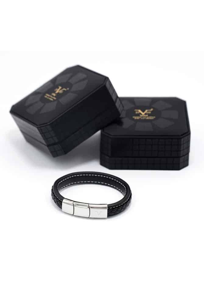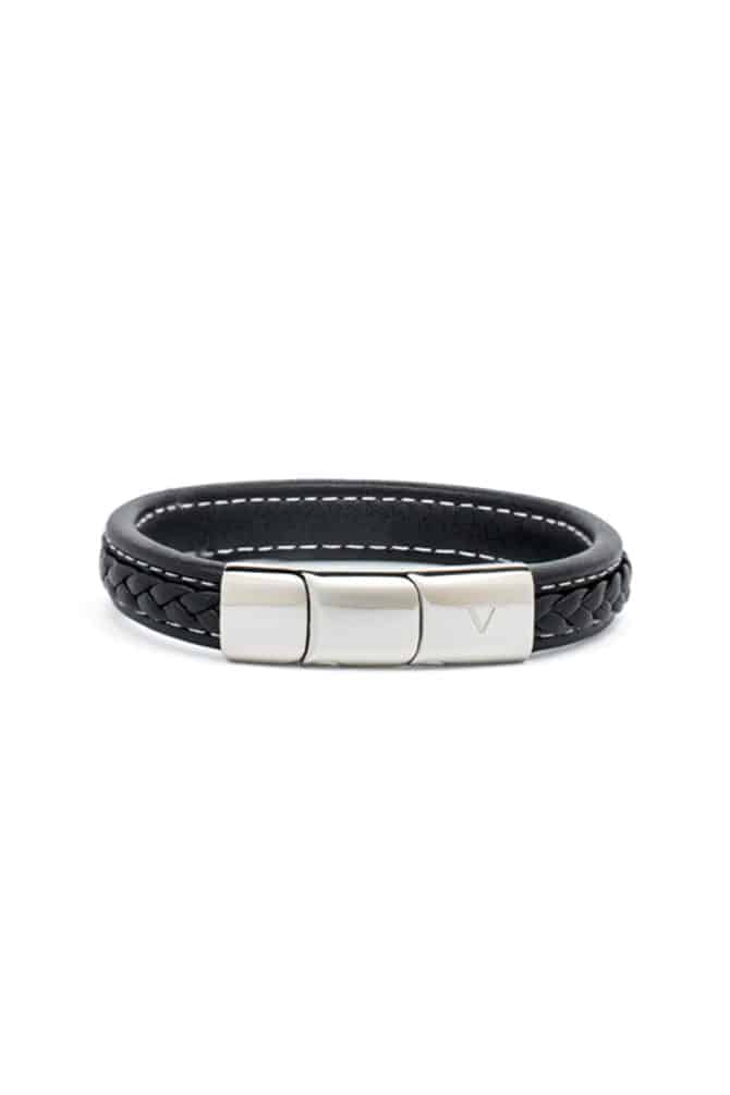 Versace Bracelet Leather-Steel Blend – Black (Bold Design)