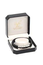 A bold Versace men’s bracelet in black leather with steel details. Stylish and gift-ready