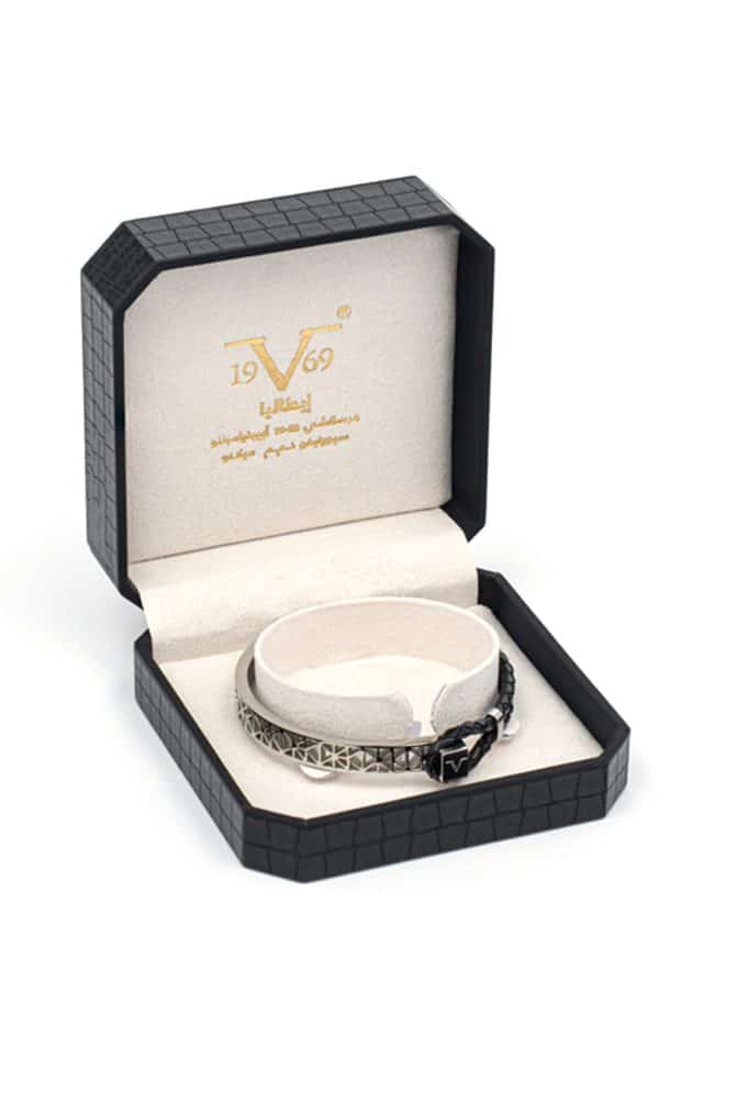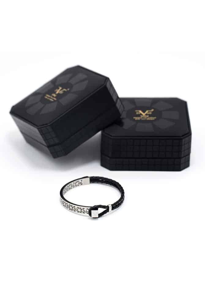 Versace Bracelet Steel & Leather – Black (Modern Look)