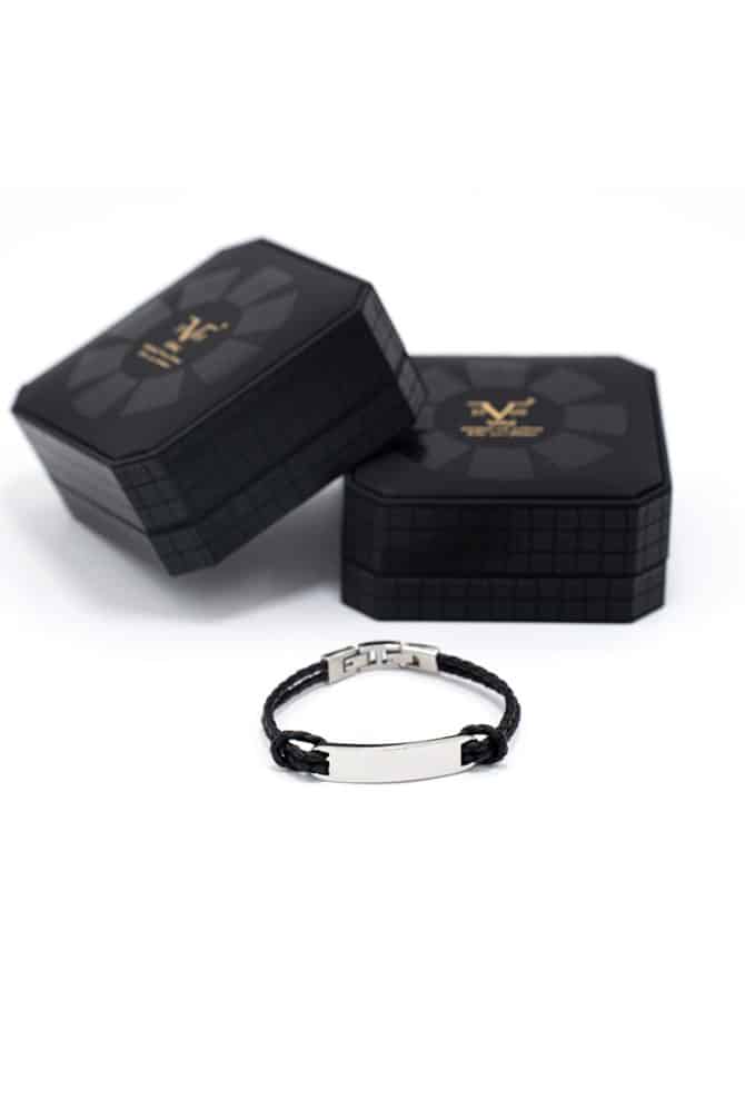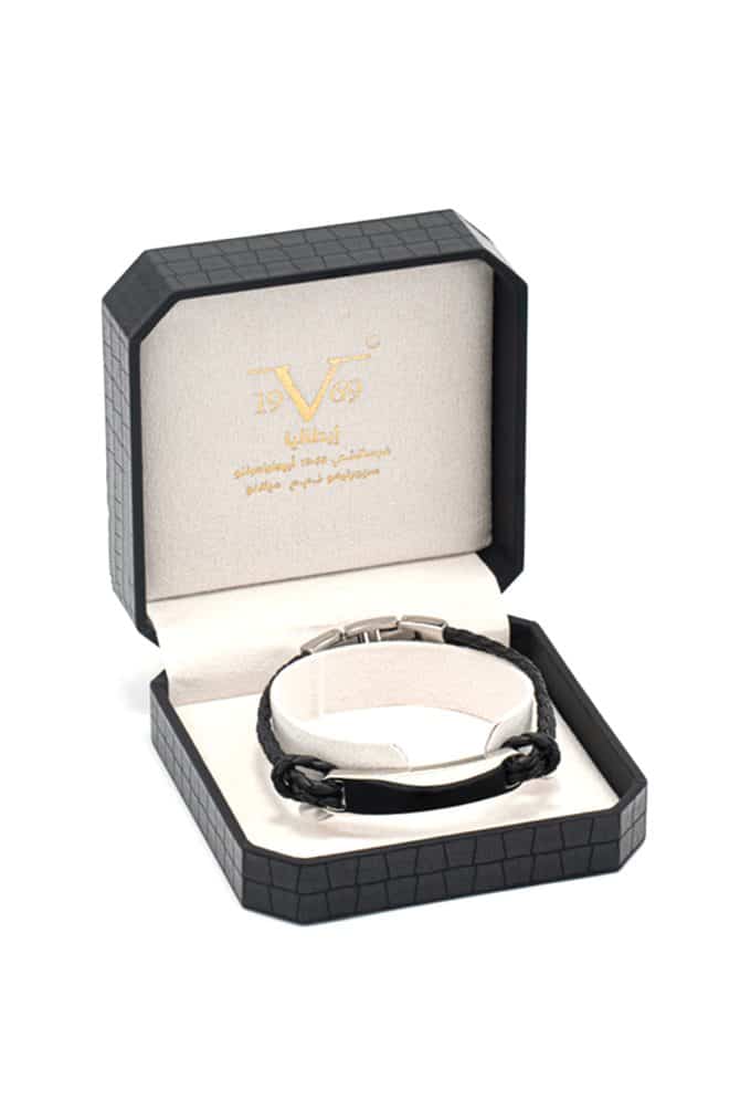 Versace men’s bracelet in steel with black leather. A royal look that makes a refined gift