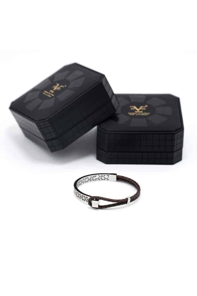 Versace Bracelet Steel & Leather – Brown(Modern Look)