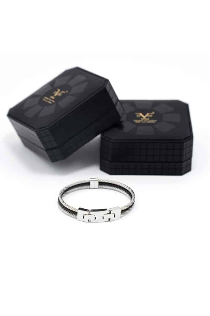 Men’s steel bracelet with black stones. A touch of elegance, perfect as a special gift