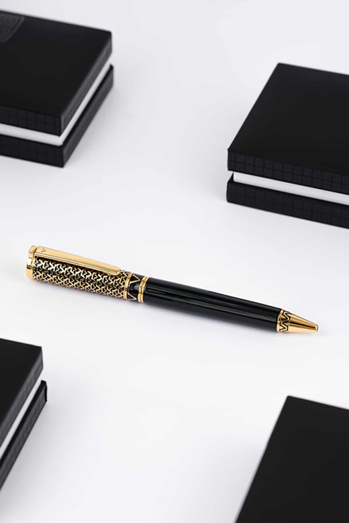A luxurious men’s pen with an elegant engraved design in gold and black. Crafted from premium metal with smooth blue ink, it’s the perfect touch of class to complement the Saudi thobe.