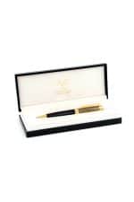 A refined metal pen in gold and black with elegant engravings, featuring smooth blue ink. Perfect for pairing with the Saudi thobe, adding a touch of class and distinction.