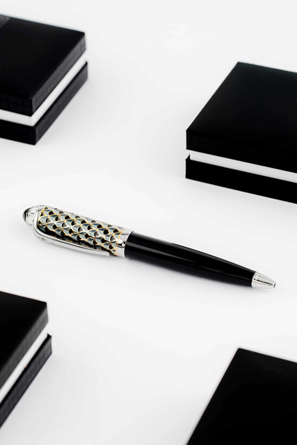 A refined men’s pen in gold and black with an elegant engraved finish. Made of durable metal with smooth blue ink, it adds a touch of distinction to the Saudi thobe look.