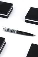 A premium men’s pen featuring an elegant silver and black engraved design. Crafted from metal with smooth blue ink, it blends style and practicality—perfect for completing the Saudi thobe look.