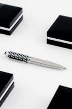 A refined men’s pen in elegant silver with a subtle engraved design. Made from durable metal with smooth blue ink, it’s a stylish choice to complement the Saudi thobe.