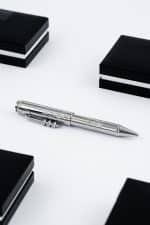 A premium silver-tone pen crafted from metal for durability and elegance. Smooth blue ink flow with a sleek design — the perfect finishing touch to the Saudi thobe.